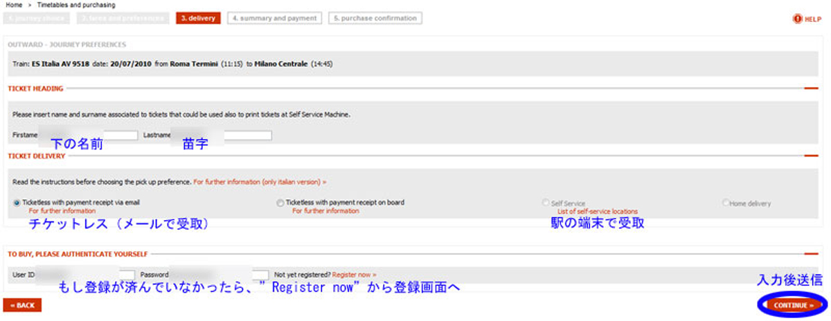 チケットレス(メールで受取)が便利そうだが、普通電車(RE)などが入ると使えないようなので、そういう区間はselfserviceにチャレンジ。