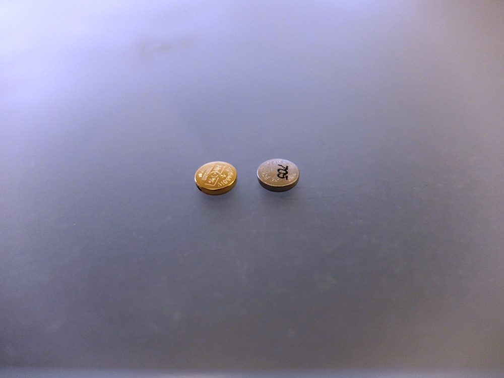 入っていた電池は、“317 RENATA SWISS MADE”と謎の刻印の入ったボタン電池だった。ソニーのボタン電池互換表で調べてみると、レナータ社の1.55Vの酸化銀電池で、直径5.8mm、厚さ1.6mmのものだった。ソニー規格では、SR516(旧SR516SW)であることがわかった。